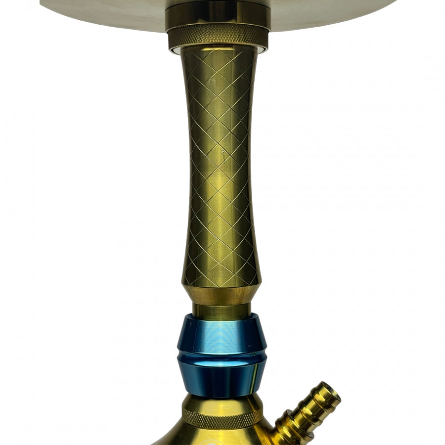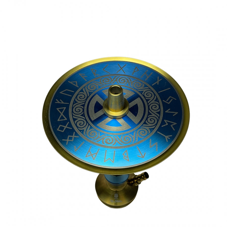 La cachimba Mr. Shisha Valhalla es una cachimba de acero inoxidable V2A, doble plato con grabados exclusivos, 3 purgas independientes configurables hasta en 11 posiciones distintas y un tubo de inmersión regulable para poder usarla tanto con bases grandes como minis.