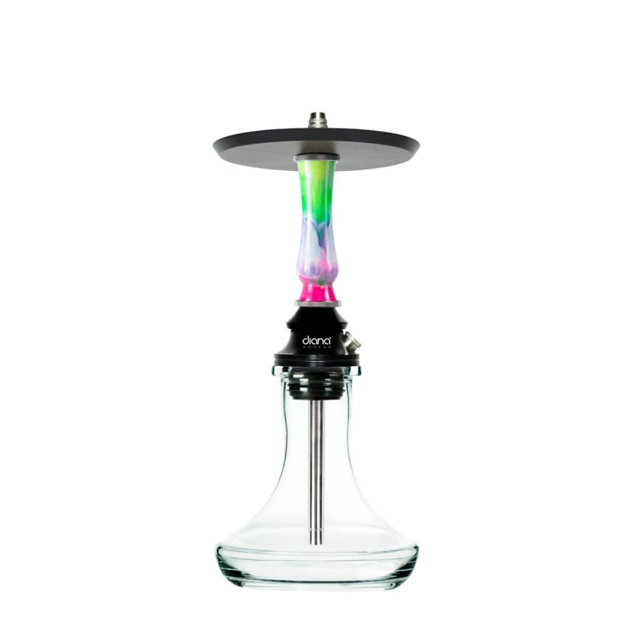 La Diana Hookah Mini es una cachimba de la marca española Diana Hookah que destaca por su diseño modular y su mástil de resina. Es una cachimba que se adapta a tus gustos y preferencias, ya que puedes cambiar el color y la forma de la resina, así como el tamaño y el estilo de la cachimba. La Diana Hookah Mini tiene una altura aproximada de 38 cm con base y está fabricada con materiales de alta calidad, como el aluminio aeronáutico y el acero inoxidable. Su purga es original y funcional, ya que expulsa el humo por los orificios alrededor de la cámara en 360º. Además, la Diana Hookah Mini incluye una cazoleta Oblako x Hooligan, una manguera de silicona, una boquilla de acero y un maletín de transporte. Si quieres una cachimba única, personalizable y con un rendimiento increíble, no lo dudes más y consigue tu Diana Hookah Mini.