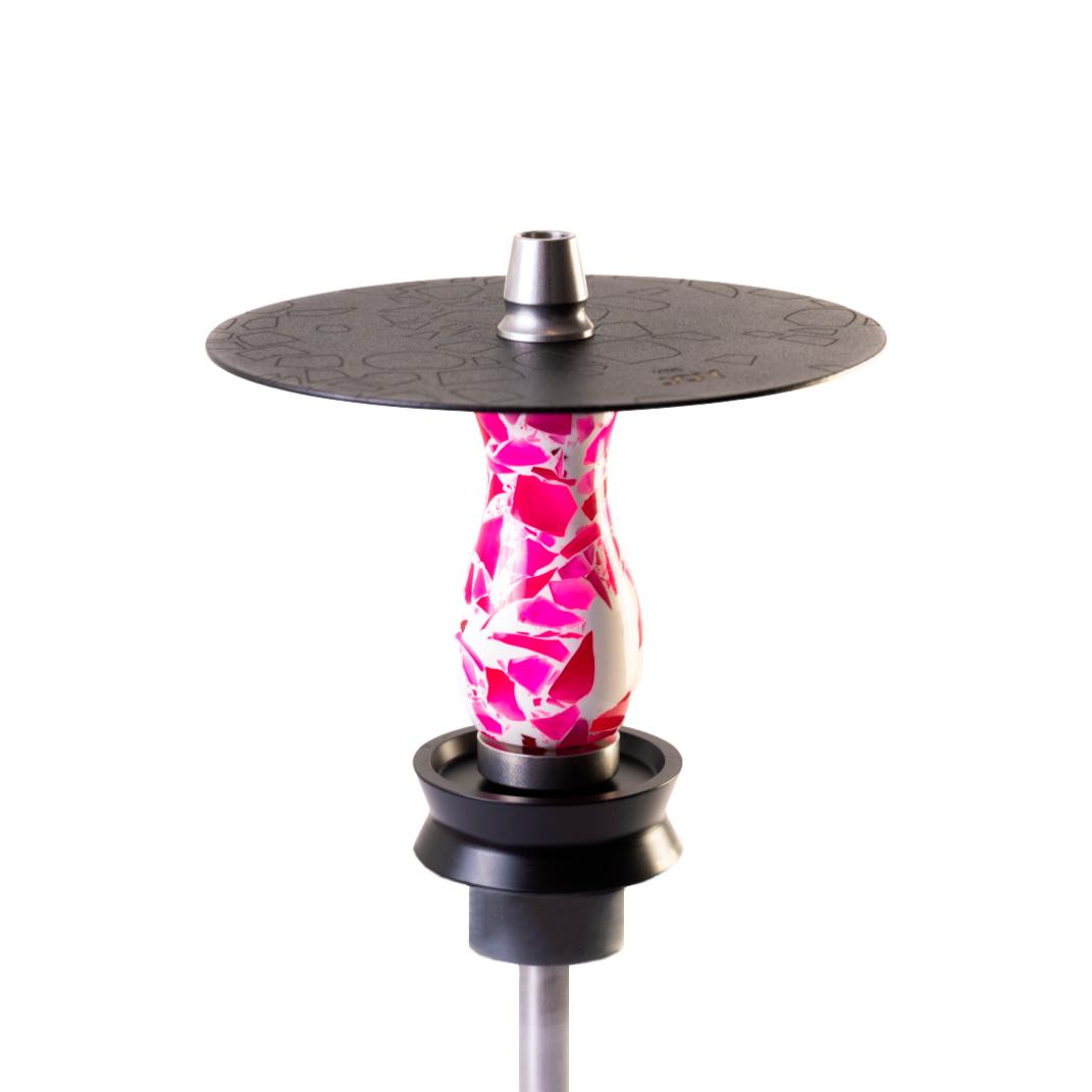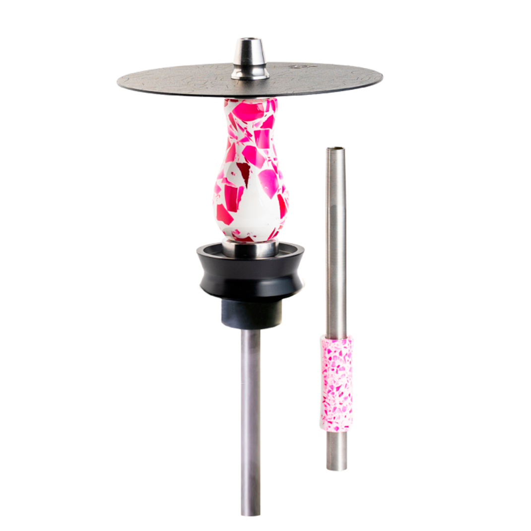 La cachimba Otto mini Joy es una shisha de pequeño tamaño, pero de gran calidad y diseño. Está fabricada con materiales resistentes y duraderos, como el acero inoxidable V2A, la resina y el poliacetal. Su mástil es de resina torneada con incrustaciones de colores que le dan un aspecto muy llamativo y distintivo. Su cámara tiene una purga vertical que rodea el cuerpo de la cachimba y expulsa el humo hacia el plato. Su base es translúcida y se engancha por goma, lo que permite usar diferentes tipos de bases mini. Su manguera es negra mate y se conecta por clic, sin necesidad de gomas. Su boquilla tiene un recubrimiento de resina que combina con el mástil. Además, incluye un silenciador desenroscable para ajustar la restricción de la fumada.
